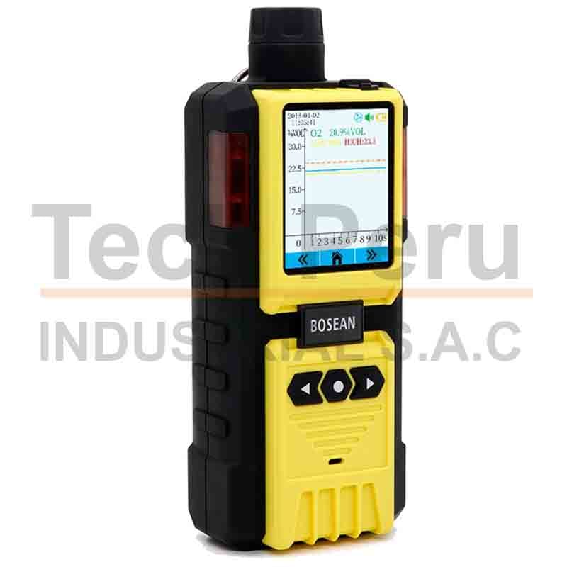 Detector multigas con bomba automática para muestreo activo de gases, alta precisión y respuesta rápida. Ideal para espacios confinados y monitoreo seguro en entornos industriales.