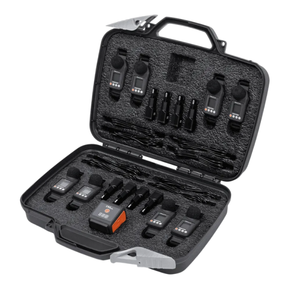 Kit para Higiene ocupacional compuesto por 8 dosímetros de ruido Sonus-2 plus, 1 calibrador acústico CR-2 y maleta para transporte.